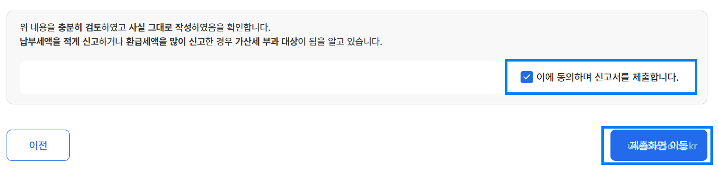 5. 입력한 신고서를 제출합니다.