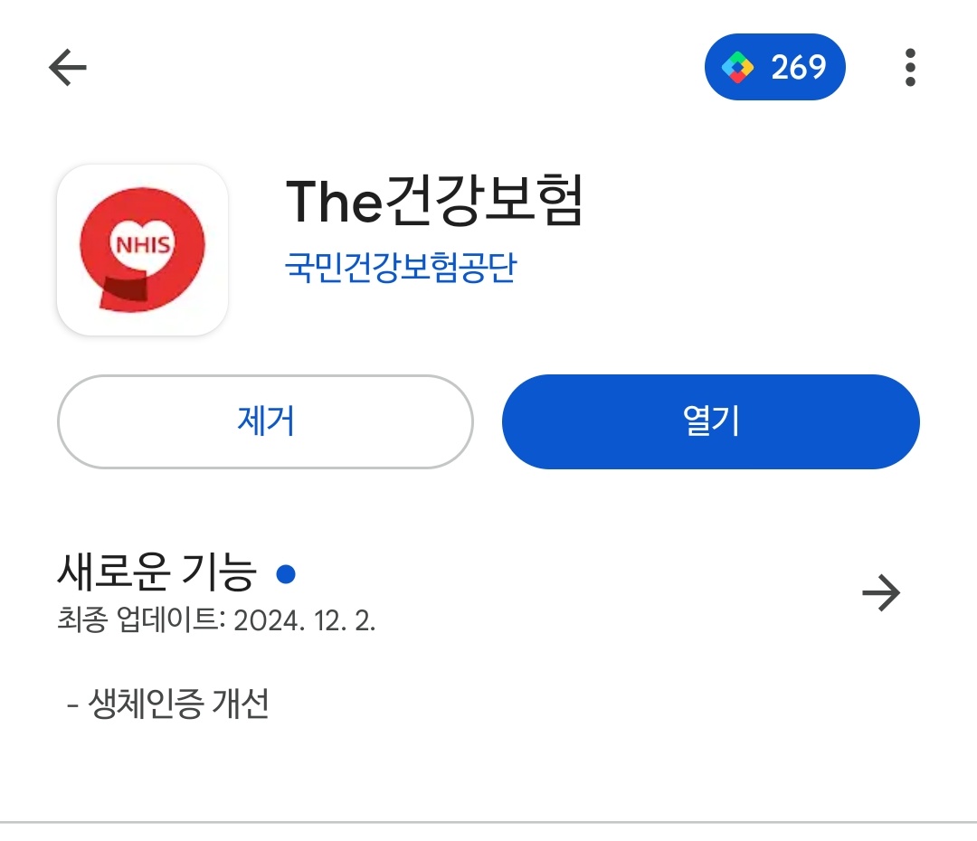 1. 앱스토어(구글 플레이스토어/애플 앱스토어)에서 The건강보험 앱을 다운로드합니다.