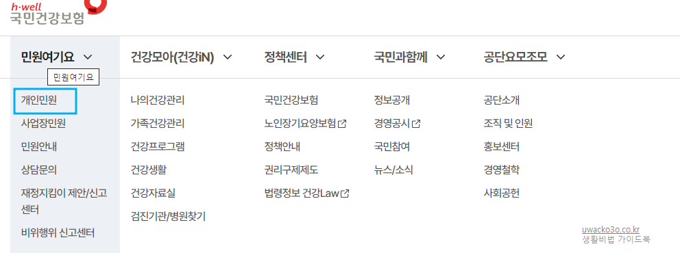 1. 국민건강보험 사이트 홈페이지에 접속합니다.