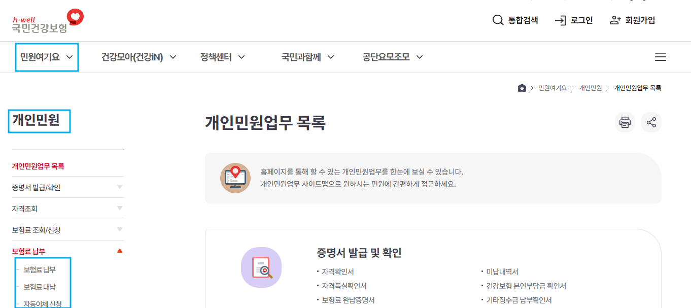 1. 지역가입자 건강보험료 신용카드 납부방법