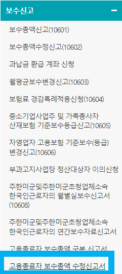 보수신고➡️ 고용종료근로자 보수총액 수정신고 클릭