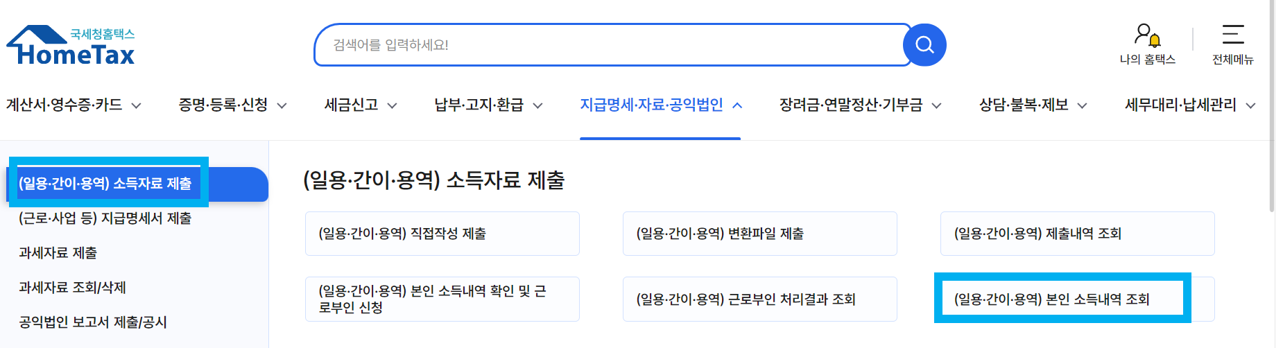 - My홈택스 > 지급명세서 조회 메뉴 클릭
